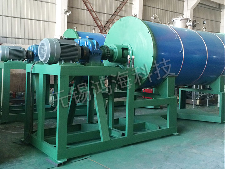 真空耙式干燥機裝置用蒸汽夾套間接加熱物料,并在高真空下 排氣,因此適應不耐高溫、在高溫下易于氧化的物料或干燥時容易產生粉末的物料(如各種燃料) ,以及干燥過程中排除的蒸汽或溶劑須回收的物料干燥作業。真空耙式干燥機中被干燥物料含水量或溶劑量高達到90%,而低的只有15%。被干燥物料有漿狀、膏狀的、粒狀的、粉狀的,也可以是纖維 狀的。這些物料干燥后的含水量一般達到0.1%,甚至0.05%。