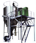 概述: 噴霧干燥是液體工藝成形和干燥工業(yè)中廣泛應(yīng)用的工藝。適用于從溶液、乳液、懸浮液和可塑性糊狀液體原料中生成粉狀、顆粒狀或塊狀固體產(chǎn)品。因此,當(dāng)成品的顆粒大小分布、殘留水份含量、堆積密度和顆粒形狀必須符合精確的標(biāo)準(zhǔn)時。噴霧干燥是一道合適的工藝。 工作原理: 空氣經(jīng)過濾和加熱,進(jìn)入干燥器頂部空氣分配器,熱空氣呈螺旋狀均勻地進(jìn)入干燥室。料液經(jīng)塔體頂部的高速離心霧化器,(旋轉(zhuǎn))噴霧成細(xì)微的霧狀液珠,與熱空氣并流接觸在短的時間內(nèi)可干燥為成品。成品連續(xù)地由干燥塔底部和旋風(fēng)分離器中輸出,廢氣由風(fēng)機(jī)排空。 特點(diǎn): ★ 干燥速度快,料液經(jīng)霧化后表面積大大增加,在熱風(fēng)氣流中,瞬間就可蒸發(fā)95%-98%的水份,完成干燥時間僅需數(shù)秒,特別適用于熱敏性物料的干燥?! ?br /> ★ 產(chǎn)品具有良好的均勻度、流動性和溶解性,產(chǎn)品純度高,質(zhì)量好。 ★ 生產(chǎn)過程簡化,操作控制方便。對于含濕量40—60%(特殊物料可達(dá)90%)的液體能一次干燥成粉粒產(chǎn)品,干燥后不需粉碎和篩選,減少生產(chǎn)工序,提高產(chǎn)品純度。對產(chǎn)品粒徑,松密度,水份,在一定范圍內(nèi)可通過改變操作條件進(jìn)行調(diào)整,控制和管理都方便。